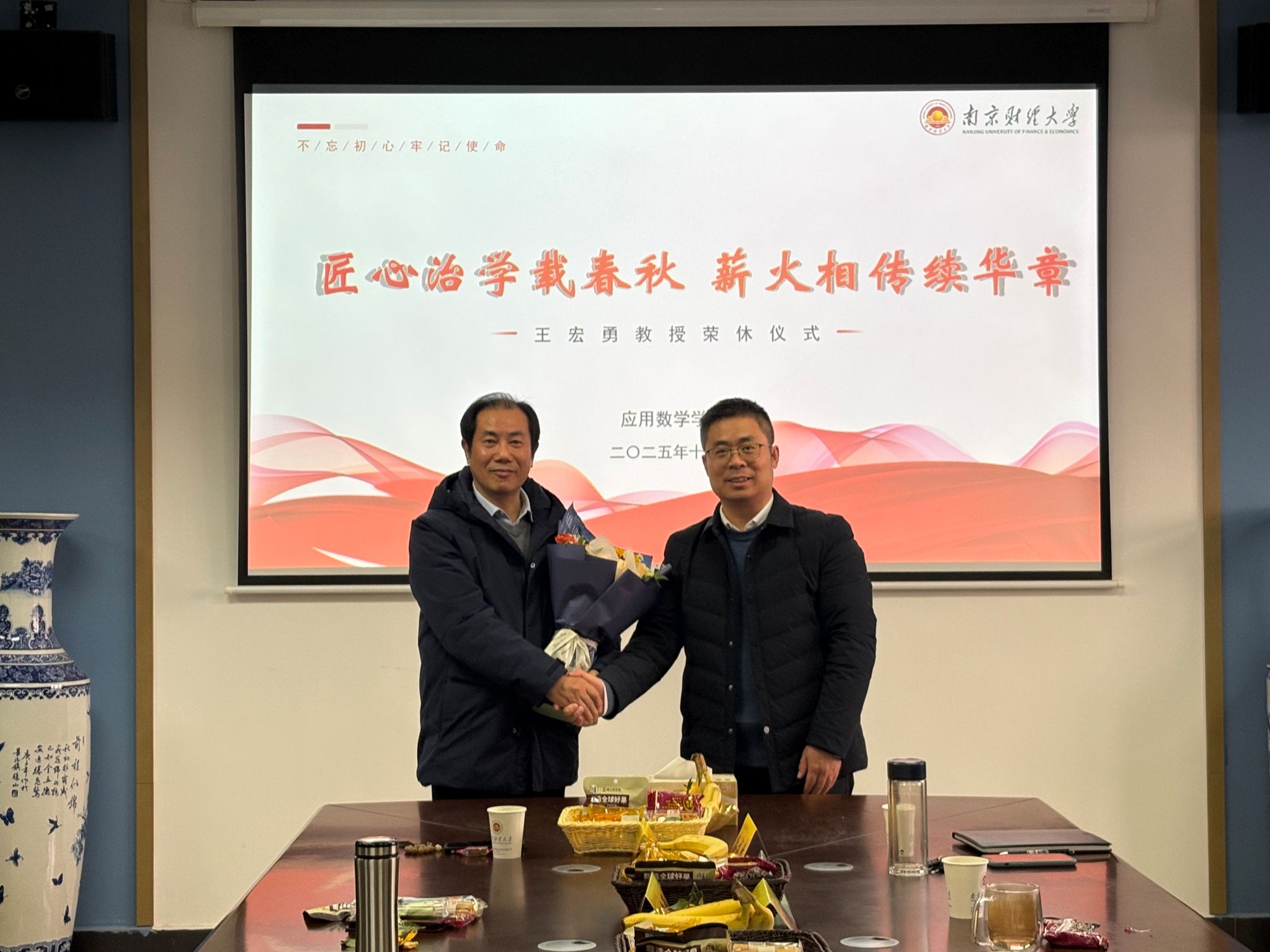 12月4日下午,学院在我校仙林校区德业楼508会议室举行“匠心治学载春秋,薪火相传续华章”王宏勇教授荣休仪式。学院部分教职工代表参会,仪式由学院党委书记殷建新主持。