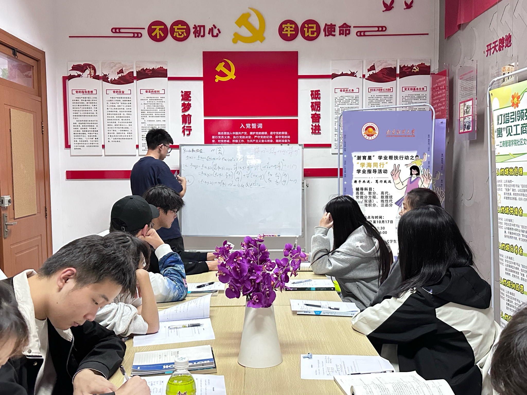 为突破学业瓶颈,助力数学能力进阶,10月16日下午,我院在仙林校区7号宿管站纽扣空间一站式学生社区举办“学海同行”拔高题研习辅导活动。活动由江宇森同学主讲,学院党委副书记孙晓飞主持,“德业”工作室承办,学院各年级学生代表参加。