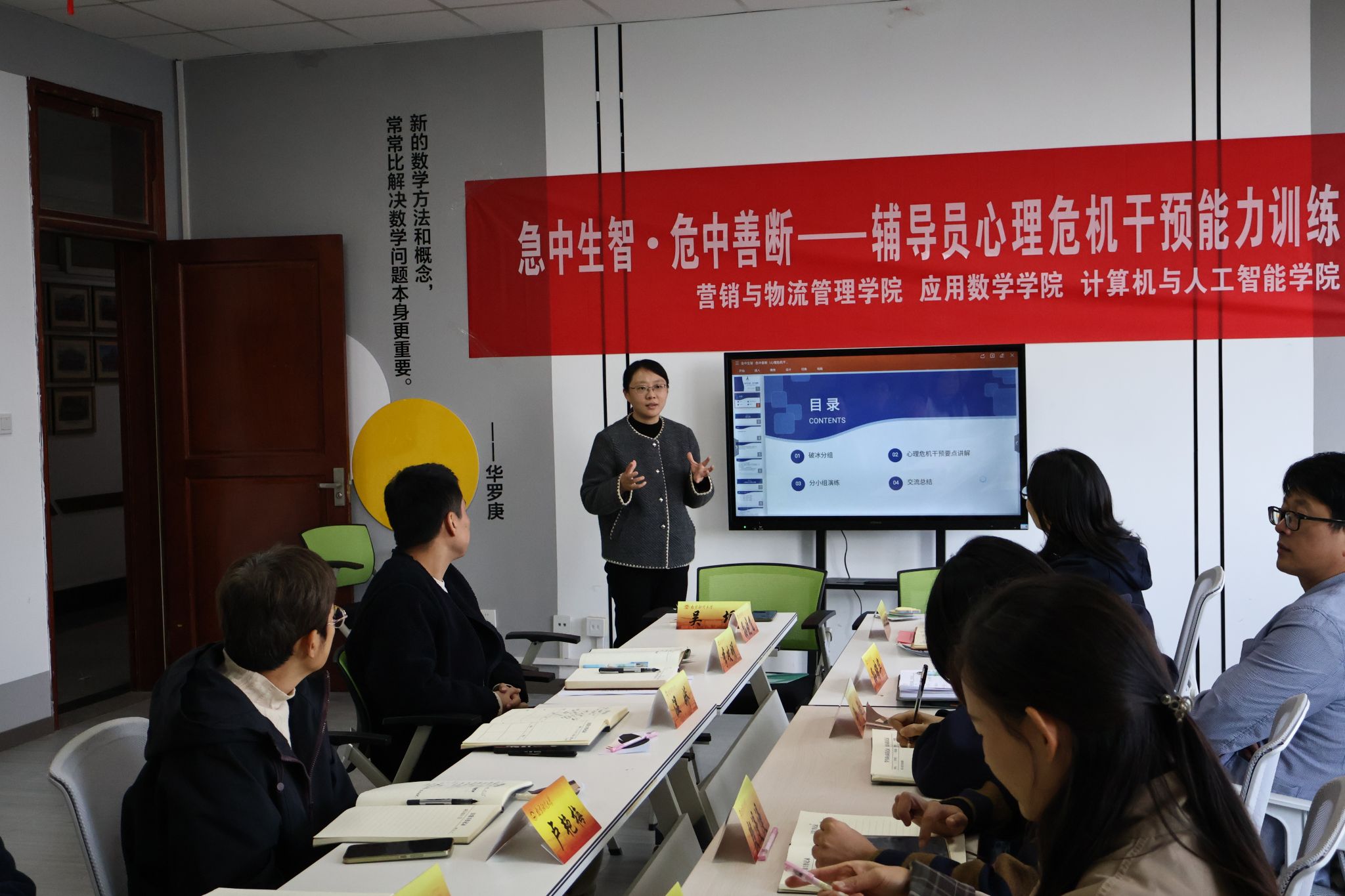 为进一步加强辅导员队伍建设,提升辅导员对学生心理危机的识别与干预能力,10月22日下午,由“萤光”生涯、“德业”、“e路领航”、“向阳花”、“华哥解忧”五家辅导员工作室共同承办的“辅导员心理危机干预能力提升”专题培训在德业楼534会议室举行。本次培训邀请校心理健康教育中心副主任吴垠老师主讲,应用数学学院、营销与物流管理学院、计算机与人工智能学院全体辅导员参加培训。
