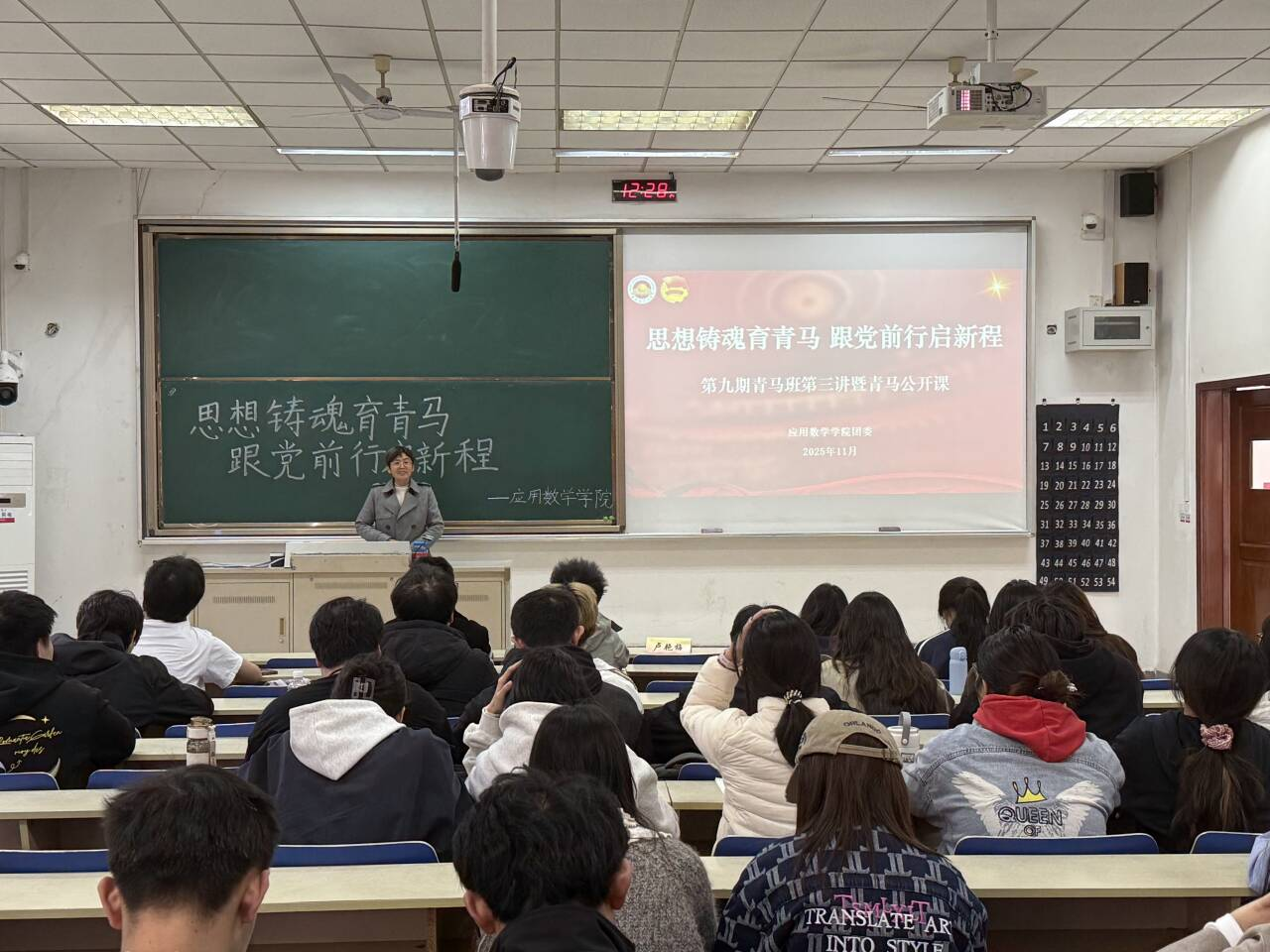 为加强青年马克思主义者对党的指导思想和党的奋斗历史的认识,我院团委于11月13日中午在仙林校区德业楼101教室举办了第九期青马班第三讲暨青马公开课,本次活动以“思想铸魂育青马,跟党前行启新程”为主题,学院本科生党支部书记卢艳梅老师主讲,我院第九期青马班全体学员参加。