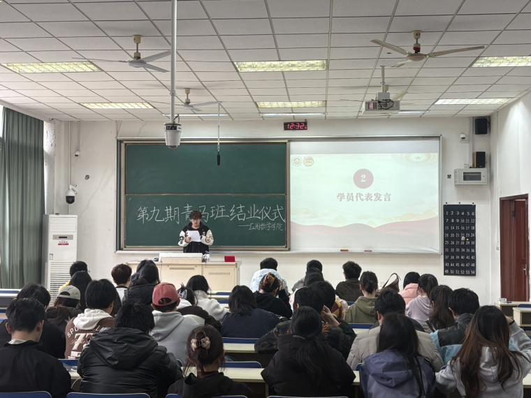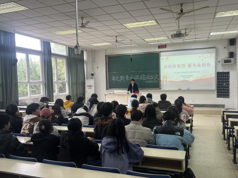 参观结束后,全体学员前往德业楼101教室,参加第九期青马班结业仪式暨“清明祭英烈,薪火永相传”信仰公开课。学院团委书记李攻明老师代表学院祝贺全体青马学员顺利结业。他回顾本期青马班培养历程,肯定学员在理论学习和实践锻炼中的成长进步,强调青马班是锤炼品格、提升素养的重要平台。他勉励学员以结业为新起点,深化理论学习,坚定理想信念,把个人成长融入国家发展与民族复兴,在青春赛道上奋力奔跑,践行青年使命。