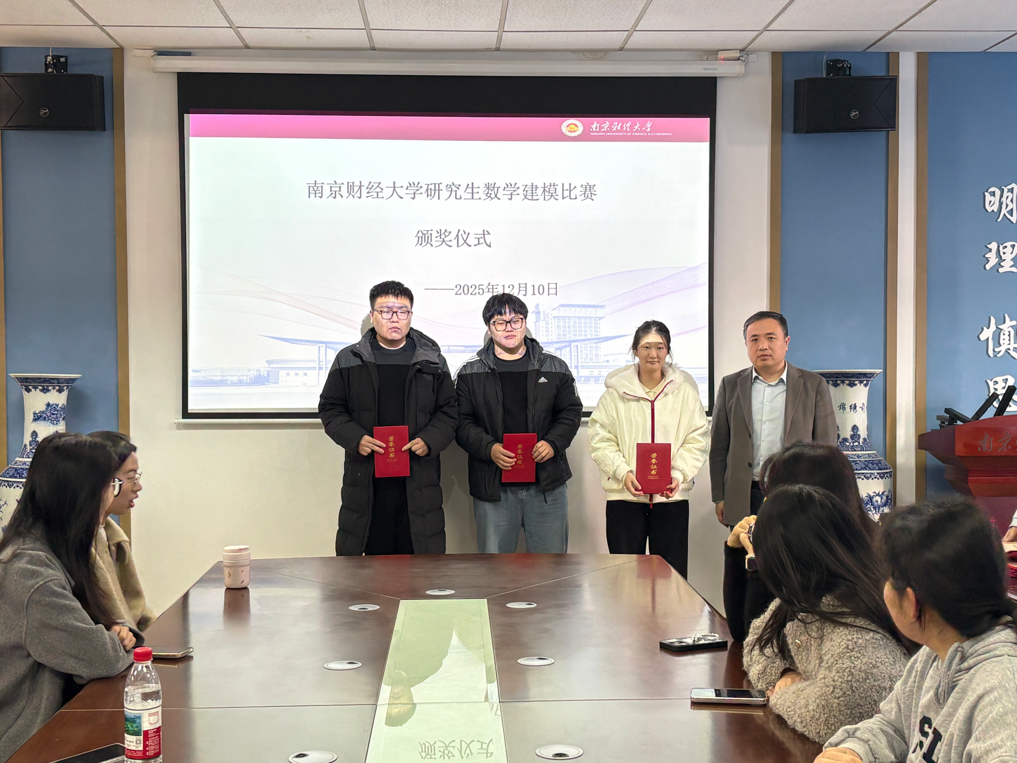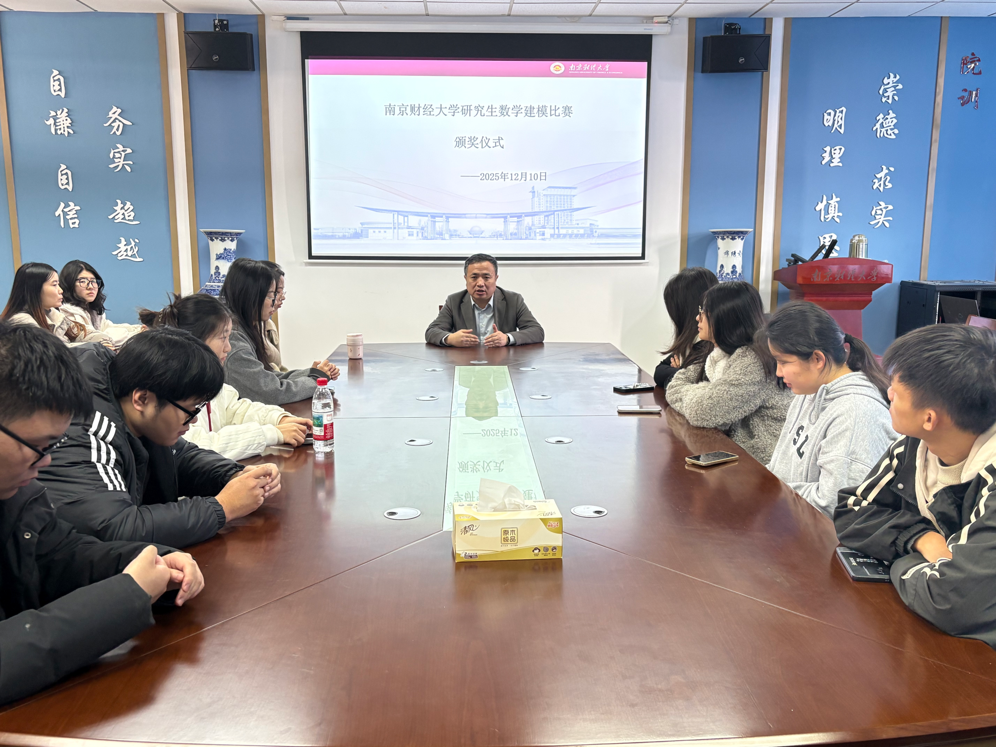 12月10日中午,大赛颁奖仪式在仙林校区德业楼508会议室举行。应用数学学院经济数学实验室主任杨靖三、获奖选手及大赛工作人员共同参加。一等奖获奖团队分享了参赛感悟,强调团队协作是比赛成功的关键,找到志同道合、能力互补的队友尤为重要。在比赛过程中,相互支持和鼓励能够激发团队潜能,做出最佳表现。